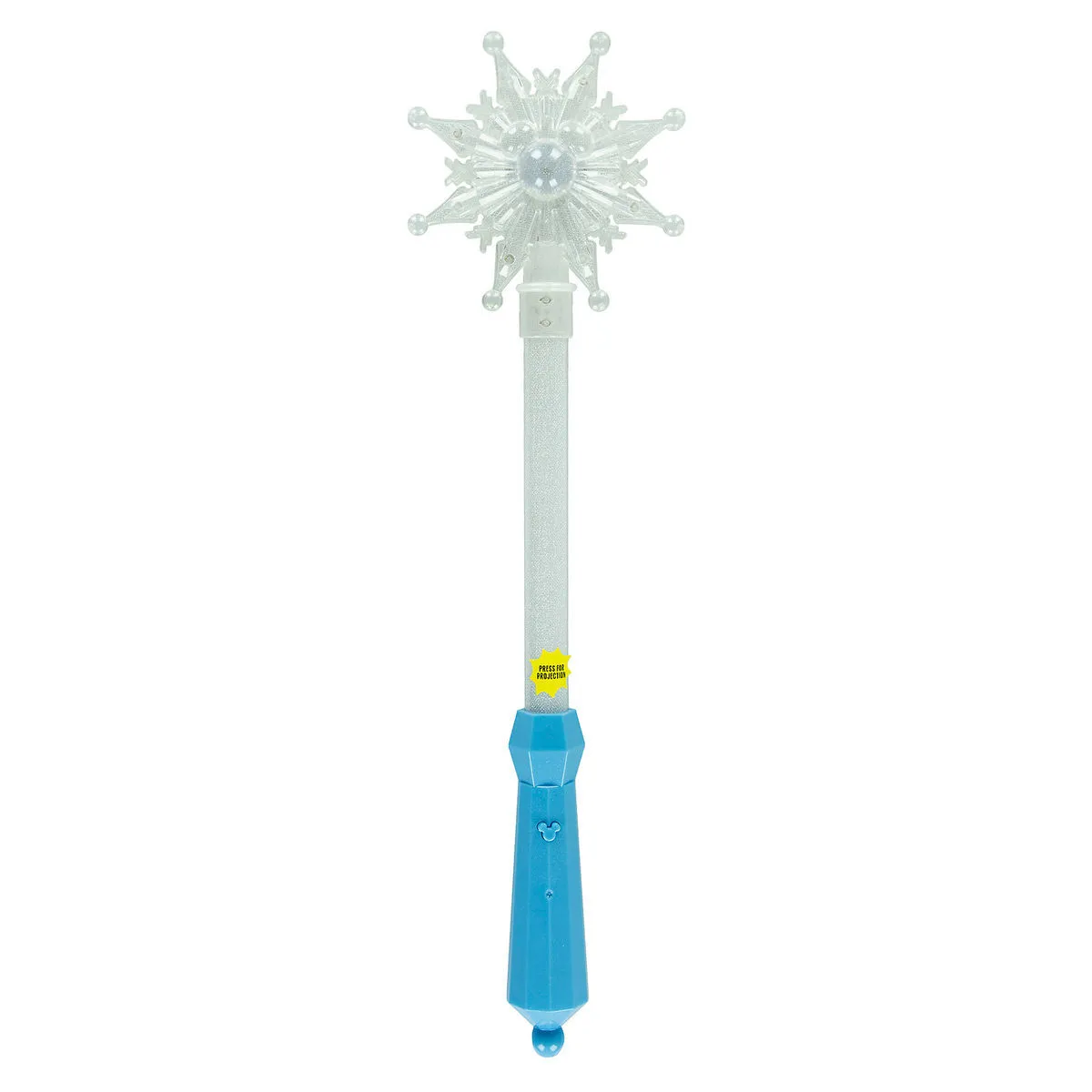 Mickey will provide a warm winter glow with this light-up snowflake wand. Both the wand and snowflake light up with different colors while also projecting Mickey icons and snowflakes.